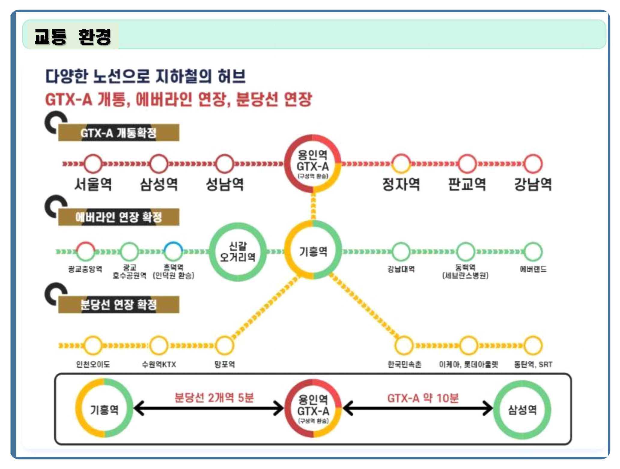 수인분당선을 통해, 기흥역에서는 판교·분당 방면 / 강남 접근 등이 가능합니다.