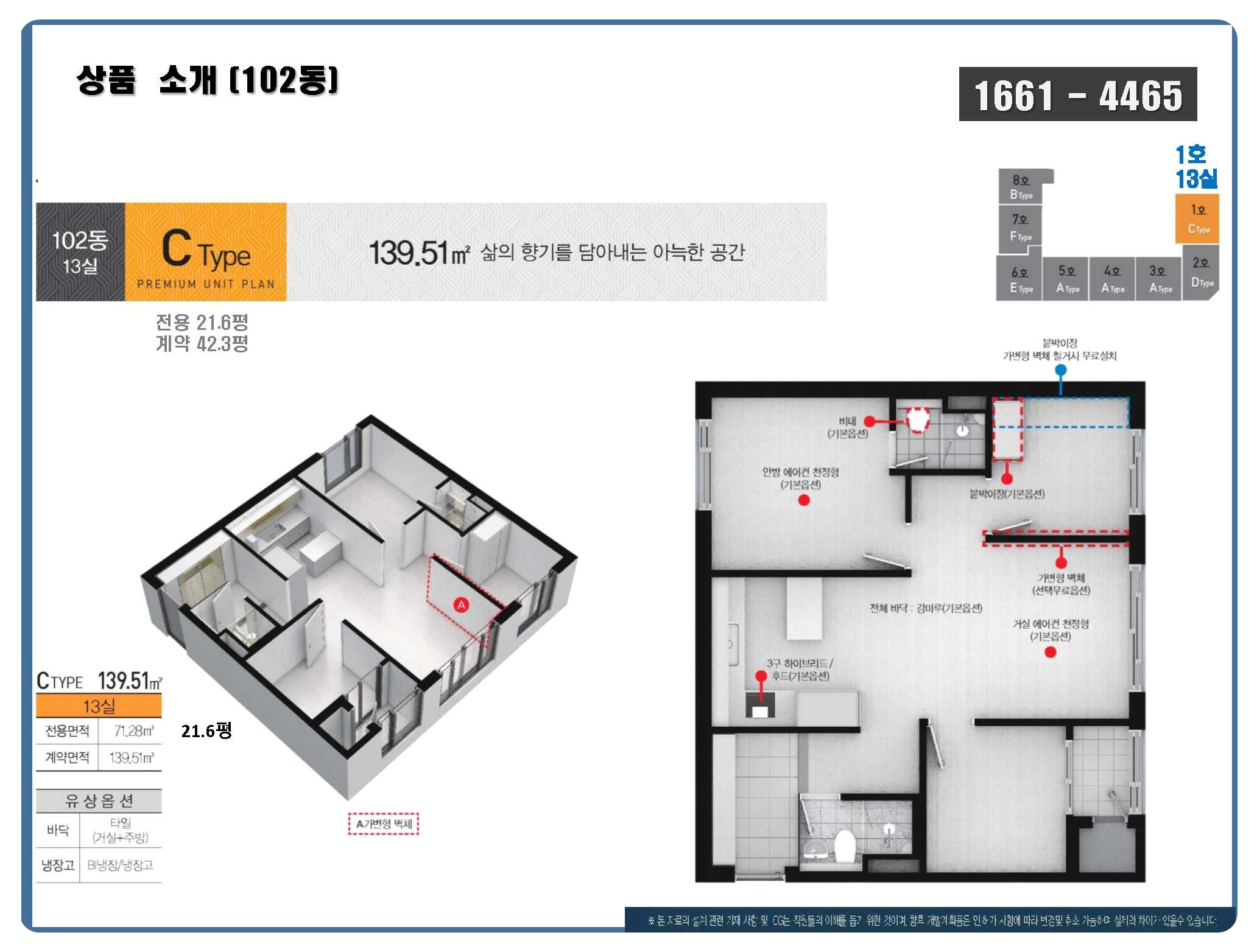 42평형 / 전용: 21.6평 (13실)