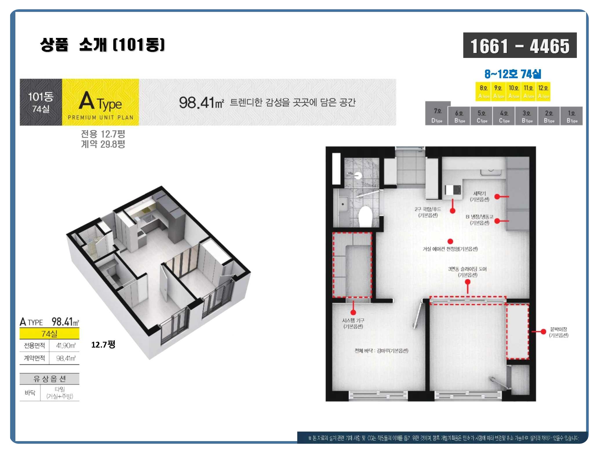 30평형 / 전용: 12.7평 (74실)