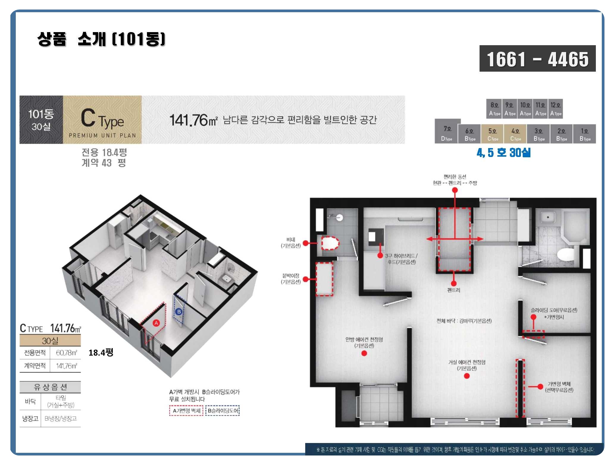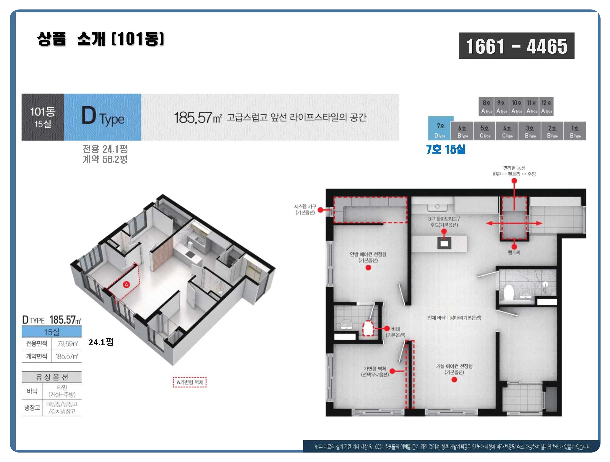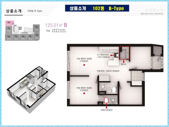 또한, B/C/D 타입은 전용 60㎡ 이상 3룸 구조이며, 필요에 따라 가변형 벽체 옵션을 통해